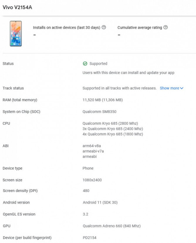 Потенциальная новинка уже появилась в базе Google Play Console под номером модели vivo V2154A, благодаря чему мы узнали ее характеристики.