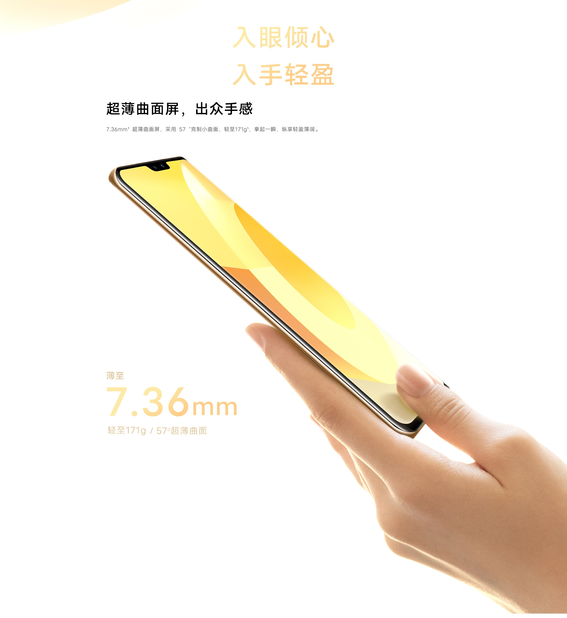 Vivo S12 Pro получил изогнутый 6,56-дюймовый AMOLED-экран с частотой обновления изображения 90 Гц, поддержкой HDR10+, скоростью отклика на прикосновения 240 Гц. Толщина смартфона составляет 7.36 мм при весе 171 г.