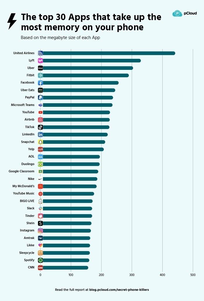 Компания pCloud составила рейтинг приложений, которые сильнее остальных разряжают аккумуляторы смартфонов.