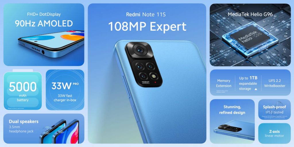 Redmi Note 11S основан на 12-нм чипе Helio G96, а Redmi Note 11 — на 6-нм чипе Snapdragon 680. В наличии слот для карт microSD, боковой сканер отпечатков пальцев, 16-Мп фронтальная камера, NFC, два динамика и 3.5 мм разъем для наушников.