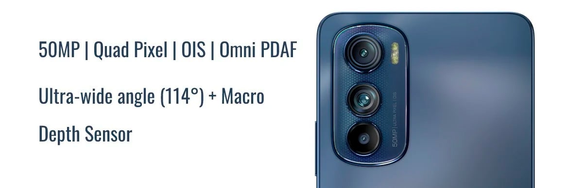 Что касается съемки фото и видео, для этого в Motorola Edge 30 есть тройная камера на задней панели, которая состоит из 50-Мп основного датчика с OIS и функцией фокусировки всех пикселей, которая использует 100% пикселей при фокусировке на объекте, а не обычные 3%, что обеспечивает более быструю фокусировку и более четкие изображения в любых условиях освещения.