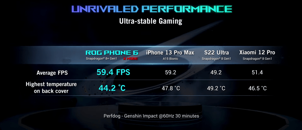 Под капотом новинок установлен топовый чипсет Snapdragon 8+ Gen 1, который имеет значительно лучшие тепловые характеристики и эффективность по сравнению со Snapdragon 8 Gen 1. Тем не менее Asus сделала все возможное, чтобы обеспечить максимальное охлаждение для максимальной производительности. Благодаря 360-градусному охлаждению процессора в сочетании с увеличенной на 30% испарительной камерой тепловые характеристики ROG Phone 6 и 6 Pro остаются на допустимом уровне.