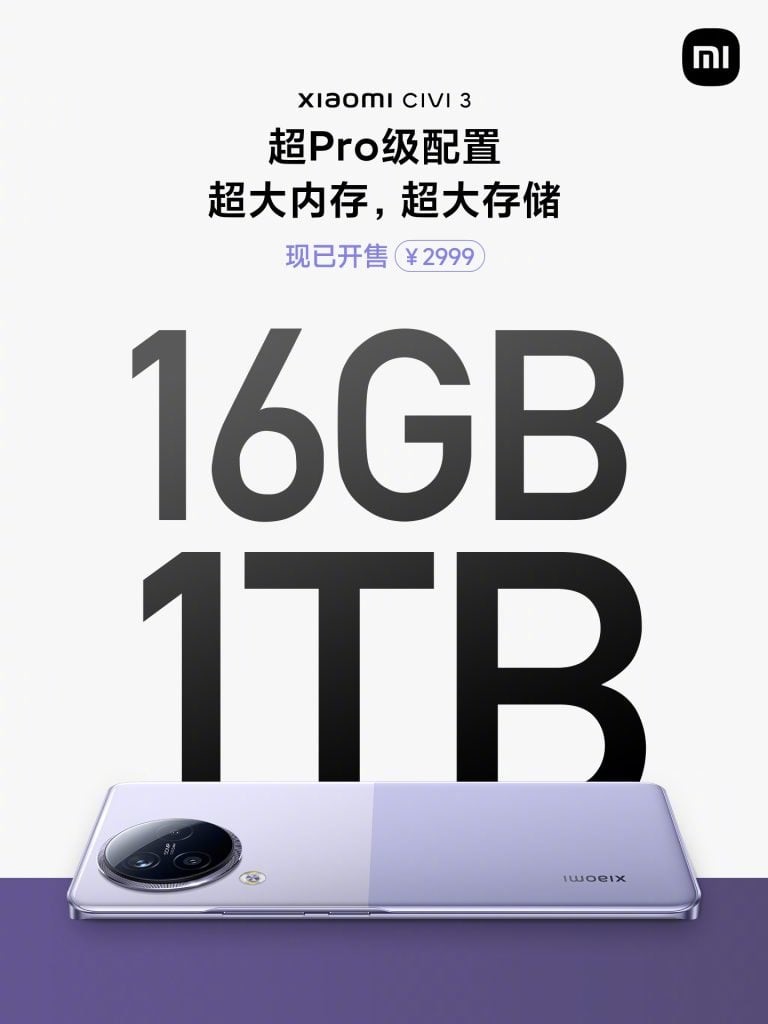 Xiaomi представила смартфон Xiaomi Civi 3 в Китае в мае текущего года, но его модификация с 1 ТБ памяти стала доступна только сейчас.