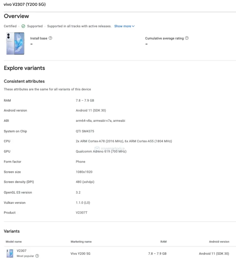 Потенциальная новинка уже появилась в Google Play Console под модельным номером V2307. Как видно, на тыльной стороне устройства размещается двойная камера с кольцевой светодиодной подсветкой Ring Aura. Задняя панель имеет изогнутые края. Спереди находится вырез под селфи-камеру, расположенный по центру.