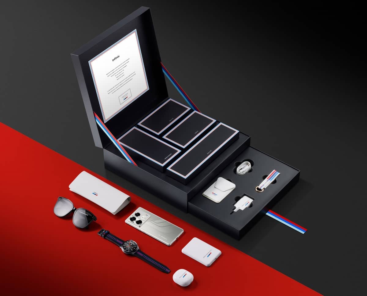Infinix сотрудничала с BMW Group Designworks при создании дизайна цвета, материалов и отделки (CMF) задних панелей Racing Edition. Они имеют дизайн Wings of Speed, выполненный с использованием передовой технологии UV-печати, украшены знаковыми триколорными гоночными символами BMW. Также предложены эксклюзивные обои и интерфейс.