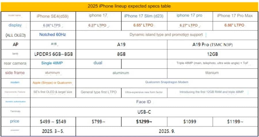 В серию iPhone 17 войдет модель iPhone 17 Slim