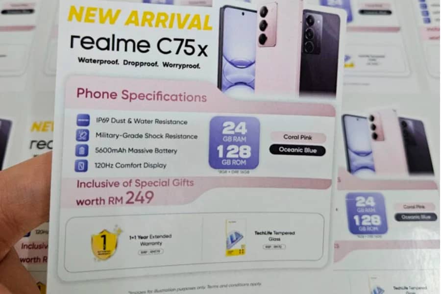 Недавно устройство появилось в базе данных малайзийского регулятора SIRIM с модельным номером RMX5020. Теперь же в сети появилось фото постера, раскрывающего характеристики потенциальной новинки.