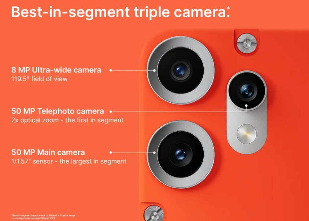 В дополнение к основному датчику идут 50-Мп телевик-камера с датчиком 1/2.88" и объективом f/1.85 с двукратным оптическим увеличением (поддерживается цифровой зум до 20x), а также 8-Мп сверхширокоугольный датчик с углом обзора 119.5° и объективом f/2.2. Фронтальная камера осталась прежней — 16 Мп с диафрагмой f/2.45.