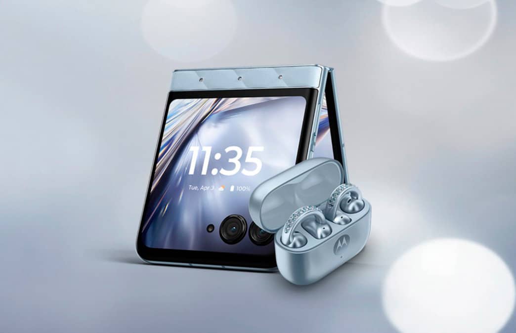 Специальный комплект под названием Brilliant Collection включает в себя смартфон Razr 2025 и наушники Moto Buds Loop в уникальном цвете Pantone Ice Melt.