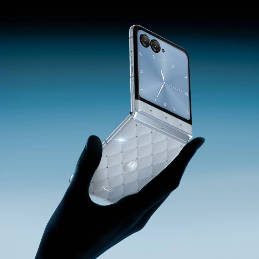 В рамках коллекции Brilliant Collection модель Razr 2025 представлена в ограниченном исполнении с отделкой Pantone Ice Melt. Задняя панель устройства выполнена в стиле стеганой кожи и украшена 35 кристаллами Swarovski, включая один крупный кристалл на шарнире, ограненный с 26 гранями. Смартфон получил тонкие рамки, полноценный внешний дисплей и кнопки регулировки громкости с кристаллическим дизайном.