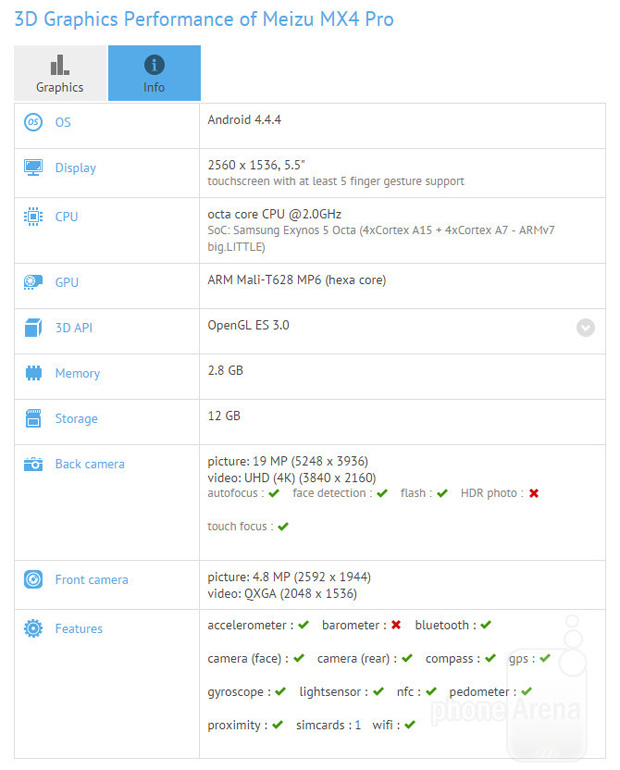 Благодаря ранним утечкам нам уже известно, что MX4 Pro получит 5,5-дюймовый QHD дисплей с разрешением 1440 x 2560 и плотностью пикселей 534 ppi, сканер отпечатков пальцев, встроенный в физическую кнопку «Home», и 3Гб оперативной памяти.