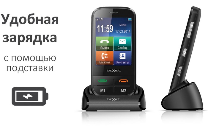 Чтобы старикам было удобнее работать с этим аппаратом, зарядное устройство для него выполнено в качестве док-станции, похожей на док-станцию домашнего радиотелефона, к которому большинство нынешних стариков уже успело привыкнуть.
