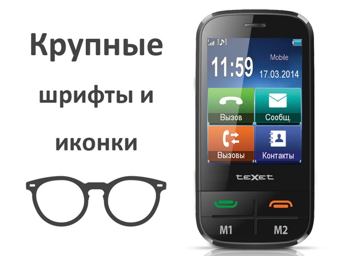 От обычных смартфонов TEХET TM-B450 отличается особым интерфейсом мобильной операционной системы Android. Все иконки в нем максимально увеличены, чтобы людям с проблемами со зрением было удобно рассматривать меню и пользоваться им.