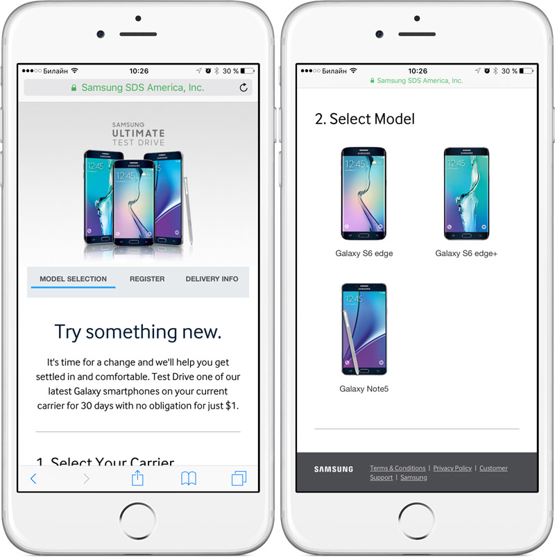 По завершению тестового периода пользователь может либо сдать девайс сотовому провайдеру, либо оплатить покупку. Условия акции описаны на странице SamsungPromotions.com.