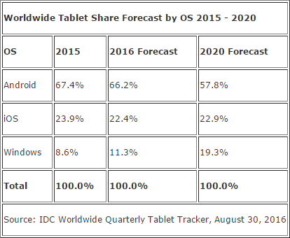 Устройства с клавиатурным блоком будут постепенно вытеснять традиционные планшеты исключительно с сенсорным вводом. Если сейчас 85% планшетов не имеют клавиатурного блока, то к 2020 году их доля уменьшится до 68%. Основная часть бесклавиатурных устройств будет продаваться в регионах с растущей экономикой, где низкая цена будет оставаться решающим фактором.