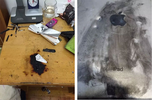 Один из китайских владельцев iPad Air сообщил, что его планшет взорвался. По словам пользователя, девайс воспламенился ночью, во время зарядки, в результате чего был испорчен стол, на котором он лежал.
