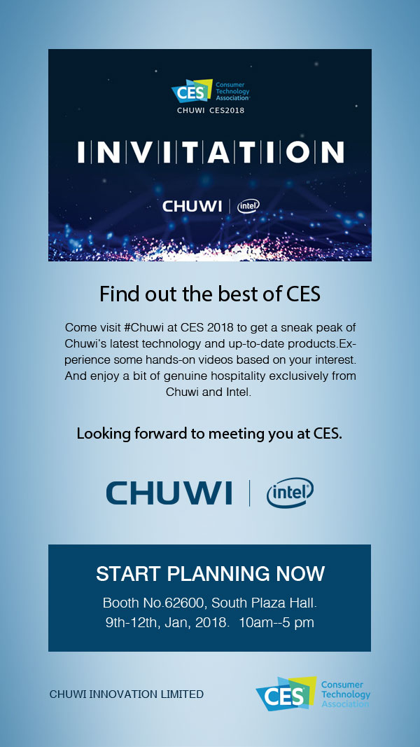 Компания уже привыкла запускать свои продукты при помощи Indiegogo. Теперь же Chuwi решила поучаствовать в международной выставке CES 2018, которая будет проходить с 9 по 12 января в South Plaza Hall.