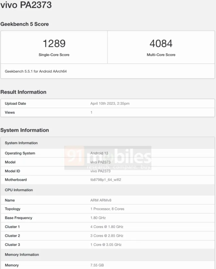 Vivo Pad 2 указан в Geekbench под номером модели PA2373. Согласно данным бенчмарка, будущая новинка оснащается 8-ядерным чипом, состоящим из четырех ядер с тактовой частотой 1.8 ГГц, трех ядер с тактовой частотой 2.85 ГГц и одного ядра с тактовой частотой 3.05 ГГц.