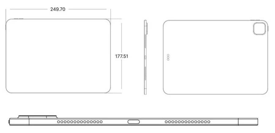 Если текущий 11-дюймовый iPad Pro имеет габариты 247.6 x 178.5 x 5.9 мм, то предстоящий получит габариты 249.7 x 177.5 x 5.1 мм.