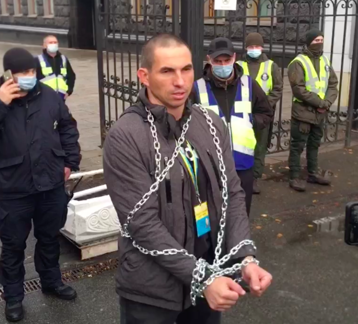«Украина в оковах. Украина находится в оккупации мятежниками. Эти мятежники сидят в нашем здании, которое принадлежит территориальной общине Киева – администрации президента Украины. Туда заехала приватная структура с предпринимателями, которые просто дерибанят Украину во главе с Зеленским, который является агентом кремля с кремлёвскими повадками, который пришел не помогать украинцам выходить их коллапса и выполнить свои обещания, а добить, дограбить и уничтожить наш народ. И ту вакцинацию, которую они заставляют делать – она не проверена. Что находится в этих вакцинах? От чего нас вакцинируют если такого вируса не существует. А не выполнил Зеленский свои обещания потому, что он не является представителем украинского народа, он заслан из кремля. Они ездят в Россию на заработки. Весь его коллектив живёт прекрасно и не обращает на украинцев никакого внимания.» заявил голова инициативной группы территориально громады Киева по восстановлению конституционного права Андрей Владимирович Рачок.