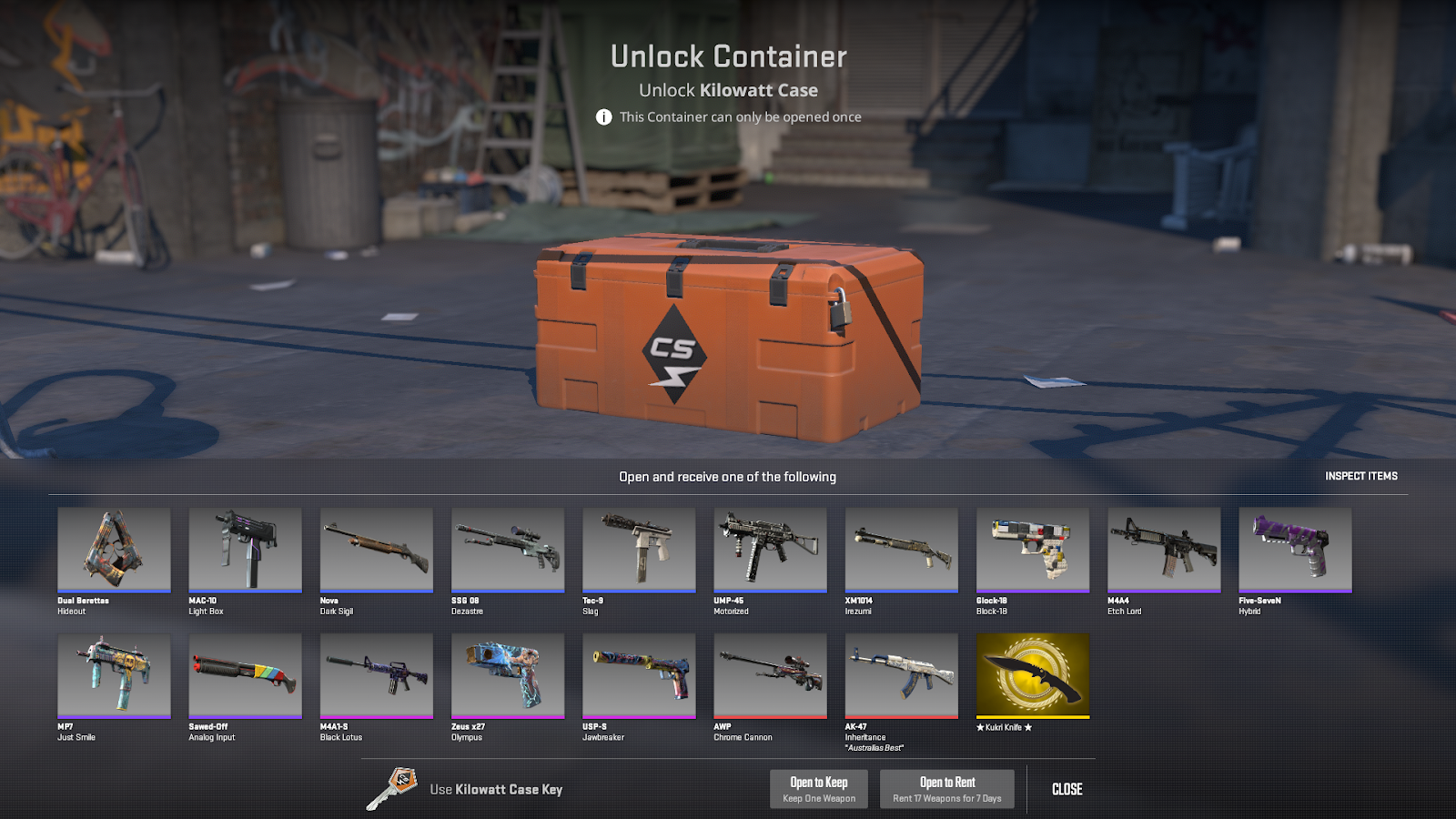 Этот кейс стал первым полноформатным дропом в CS2 и моментально вошёл в оборот. Причина — свежие, нигде ранее не встречающиеся скины. Сам по себе Zeus с молниями уже вызывает бурю эмоций. Но когда в наборе появляется нож Kukri, который всё ещё считается диковинкой, интерес становится не только массовым, но и инвестиционным. Несмотря на невысокую цену, кейс до сих пор стабильно открывается тысячами игроков — новичками и коллекционерами.