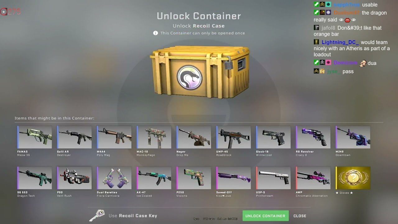 Recoil стал культовым благодаря возвращению легендарной серии Printstream. Именно в нём можно найти USP-S | Printstream, один из самых востребованных белых скинов последних лет. Плюс яркий AWP | Chromatic Aberration и редкие перчатки, которые раньше выпадали только в Broken Fang. Кейс до сих пор активно покупается как для открытия, так и для скупки на перспективу. Его любят за чёткую отдачу: если повезло, дроп может стоить сотни долларов.