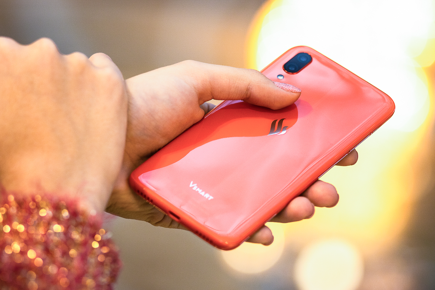 Смартфон Vsmart Star выпускается в нескольких расцветках. На его тыльной панели размещается вертикальным образом двойная основная камера. В ее же блоке, только чуть ниже, можно заметить светодиодную вспышку. Также сзади оказался сканер отпечатков пальцев, логотип компании и название устройства.
