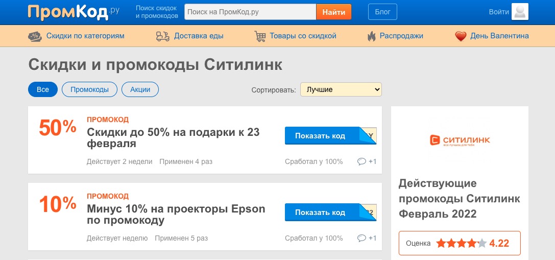 Промокод – это своего рода палочка-выручалочка, ведь так покупка становится намного дешевле и выгоднее. На сайте promkod.ru предлагаются промокоды со скидкой от 5 до 60%, что очень удобно. Компания «Ситилинк» предлагает широкий ассортимент различных товаров. Так что вы без проблем сможете с выгодой для себя приобрести действительно полезную вещь. Часто бывают случаи, что промокоды могут быть на уже фиксированную сумму от 500 до 4500 рублей. Сами промокоды, подробности о которых можно узнать на сайте promkod.ru, могут действовать короткий промежуток времени, поэтому нужно как можно быстрее их использовать, иначе можно упустить свой шанс сэкономить приличную сумму.