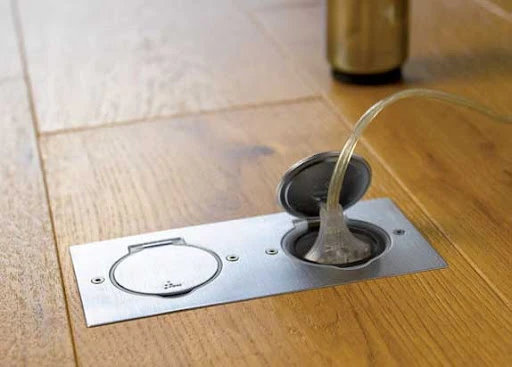 Встановлюються в спеціальні монтажні коробки в підлозі. Часто використовуються у великих приміщеннях або там, де техніка розташована далеко від стін.