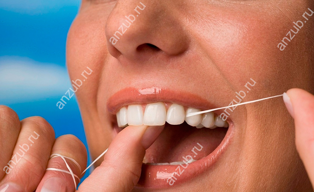 - под десну флосс не заводим, стараясь не тереть им межзубный сосочек,