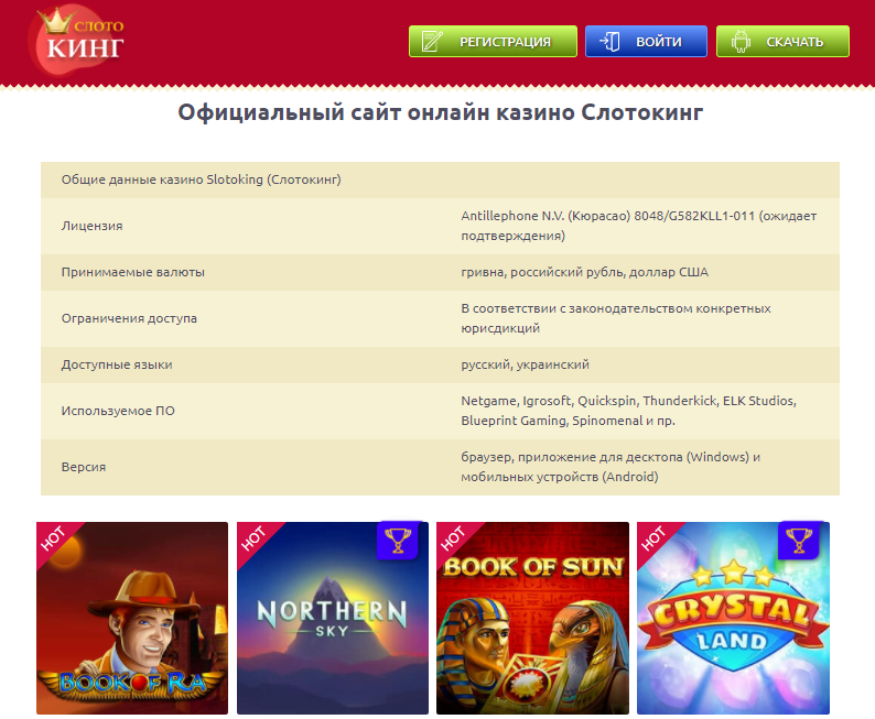 Примером для многих остается онлайн казино Слотокинг – один из первых легальных виртуальных игровых клубов страны, на сегодня располагающий самой внушительной коллекцией «одноруких бандитов». Список насчитывает сотни красочных аппаратов и симуляторов, поэтому найти подходящее развлечение для игры на деньги или бесплатные фишки здесь сможет любой желающий.