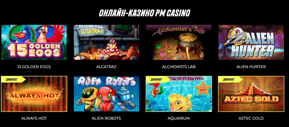 PM Казино – онлайн-зал с широким ассортиментом слотов. Заведение работает полностью легально, что подтверждает наличие лицензии. Вы можете зарегистрироваться совершенно бесплатно и сразу пополнять счет, выводить выигрыши. Площадка предоставляет доступ к сотням аппаратов от известных разработчиков. Гемблерам доступны скидки, щедрые бонусы, розыгрыши джек-потов и не только.