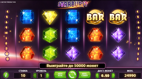 Здесь простой, но в тоже время привлекательный дизайн, щедрые выплаты, поэтому он пользуется успехом у новых и у опытных игроков. В Starburst низкая волатильность, это означает, что выигрыши можно получать намного чаще, чем в других автоматах. Успешная комбинация способна увеличить сумму ставки в 50 000 раз.