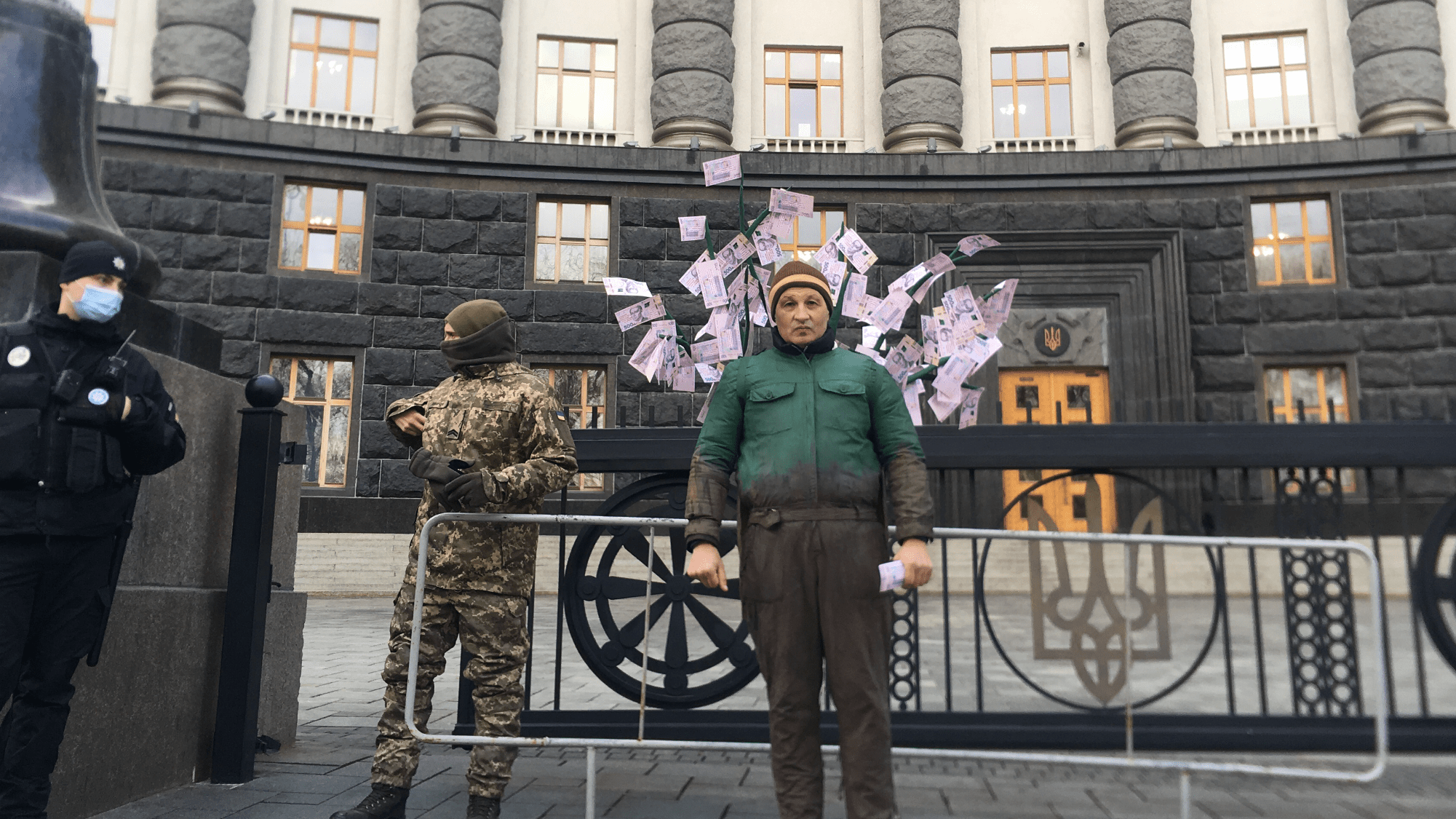 Сегодня под стенами Министерства финансов Украины прошел одиночный пикет, где активист хотел привлечь внимание к тому, как расходуются НАШИ деньги: «Я своим примером хочу показать людям, правительству, каким путем наше правительство должно идти. Прежде всего, наше богатство – это наша земля, наше богатство – не кредиты МВФ, наше богатство – люди. Верните людям деньги и дайте им спокойно работать, и страна станет богатой. В богатой стране – богатые люди!».