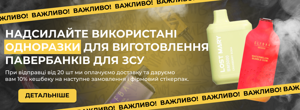Ініціатива Vandal Vape Shop з переробки використаних одноразових підсистем у павербанки для ЗСУ є прикладом того, як можна поєднати екологічну відповідальність та соціальну допомогу. Це дозволяє не лише зменшити кількість відходів, але й підтримати наших військових, забезпечуючи їх надійними джерелами живлення. Долучайтеся до цієї важливої справи та допомагайте зберігати наше довкілля чистим, а наших захисників — забезпеченими всім необхідним.
