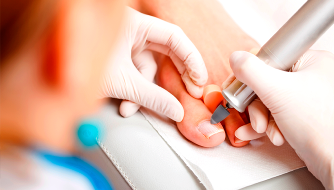 Если у пациента есть заболевание стопы, то обычный педикюр может не только не помочь, но и даже навредить. При грибке кожа очень восприимчива и к другим болезням и инфекциям. Именно из-за этого нельзя повреждать ее, а при работе пилкой или щипчиками нет никакой гарантии. Педикюр, который делает подолог выполняется специальным аппаратом с фрезой, который дает возможность контролировать процесс и не позволять достигать такой глубины, чтобы повредить кожу. Также очень большое отличие такого педикюра от обычного - это выполнение его насухо, без отпаривания. И сам подолог, и врач дерматолог советуют просто сделать ванночку на несколько минут перед такой процедурой для очистки стоп.