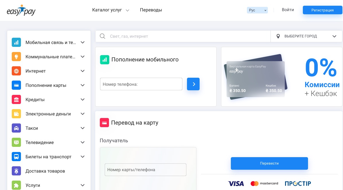 - Самое первое, что нужно сделать, так это зарегистрироваться на сайте Easypay.ua.