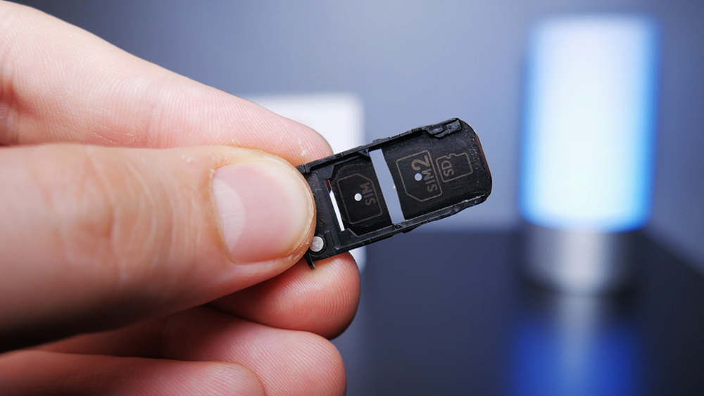 На верхнем торце имеется гибридный лоток для nanoSIM-карт и microSD-карты.