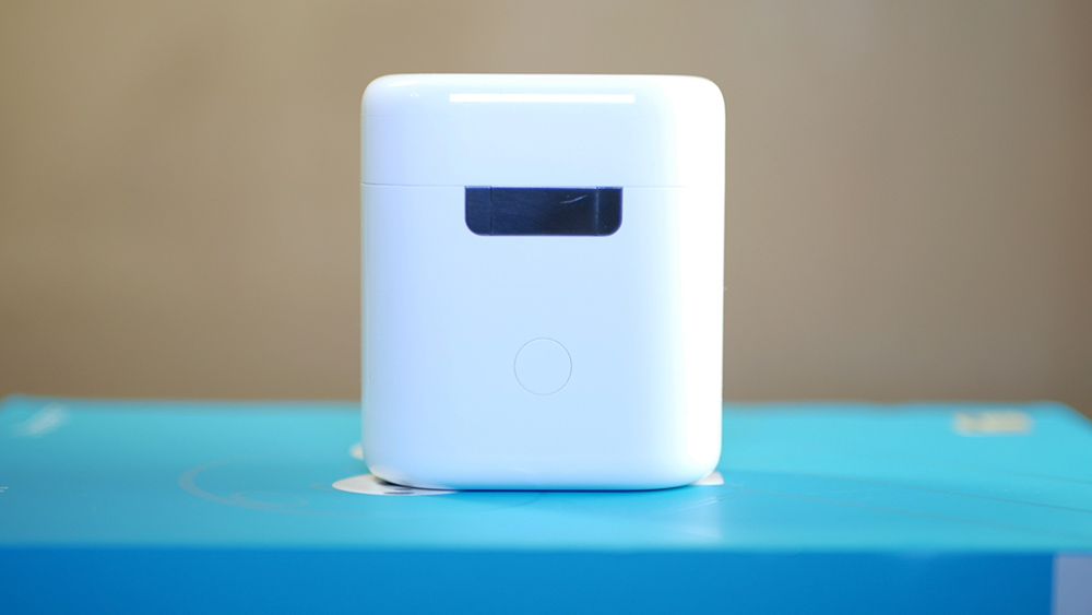 Для активации новых наушников понадобится зажать единственную функциональную клавишу на кейсе на пять секунд. Внутри чехла можно заметить дополнительный светодиодный индикатор зарядки наушников, расположенный между ними. При заряде ниже 20% он светится красным, от 20% до 80% — оранжевым, а более 80% — зеленым.