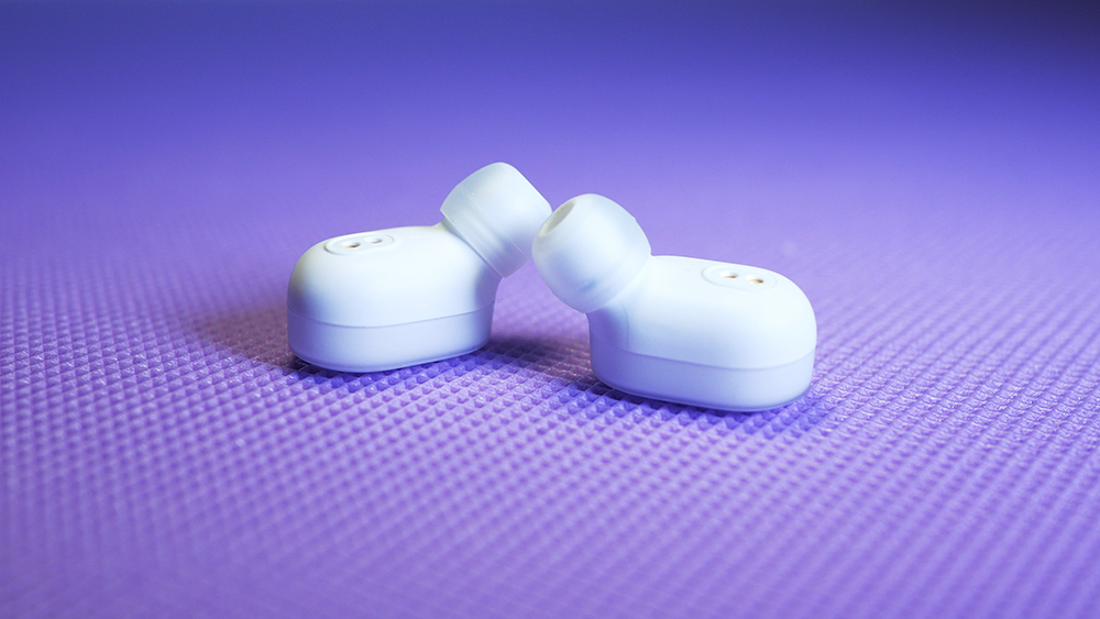 Корпус наушников, как и кейс для зарядки, выполнены из матового ABS пластика, приятного на ощупь. Верхняя крышка кейса полупрозрачная, а нижняя полностью белая. Амбушюры созданы из мягкого силикона. В комплекте для удобства идет сразу несколько размеров. Сборка наушников и кейса качественная и надежная.
