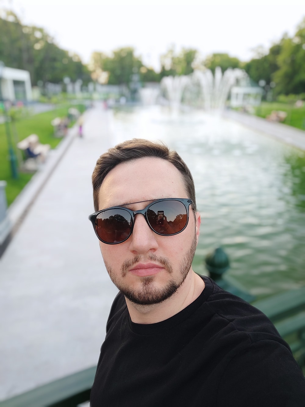 Фронтальная камера размещена в каплевидной выемке дисплея и представлена 32-Мп датчиком с диафрагмой f/2.0. Она делает качественные селфи с естественной цветопередачей. Чего ей не хватает, так это автофокусировки.