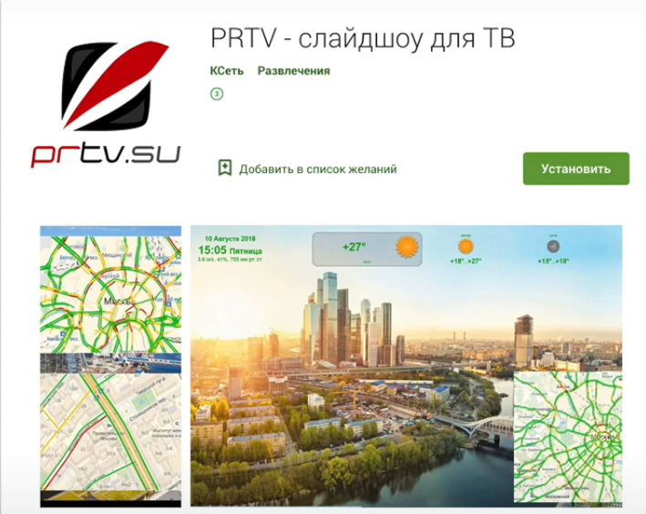 Чтобы запустить полученный слайд на телевизоре, нужно скачать из официального магазина приложение под названием PRTV.SU. Когда вы откроете приложение, то в поле «Код слайдшоу» нужно ввести «Номер для ТВ» вашего слайда, который вы создавали на сайте. После ввода указанного пятизначного кода, на вашем телевизоре запустится созданное вами слайдшоу. Аналогично можно в приложении ввести код подборки, если у вас имеются таковые, что позволит выбирать слайдшоу, которые вам наиболее импонируют.