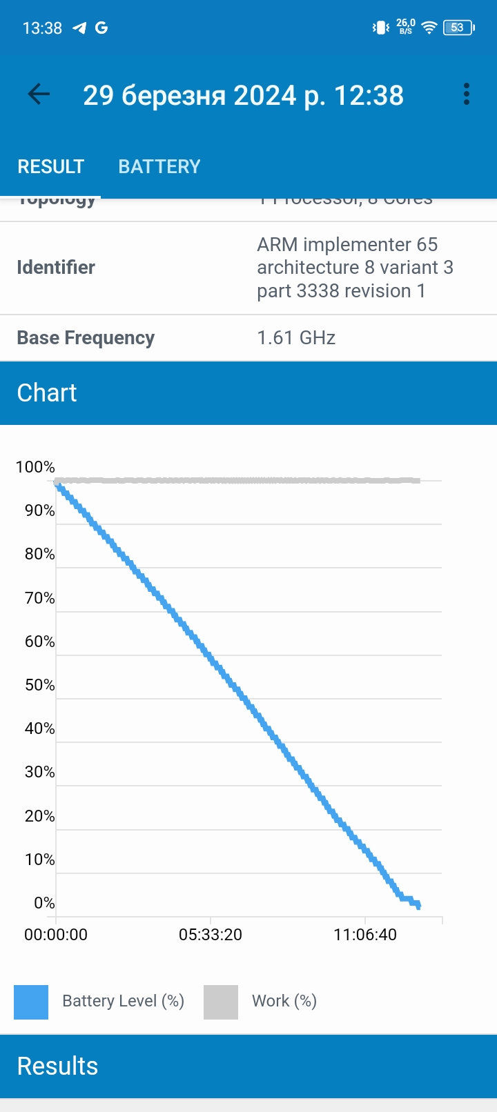 itel P55+ имеет несъемный аккумулятор емкостью 5000 мАч. Он поддерживает зарядку мощностью 45 Вт. На полную зарядку уходит чуть более 1 часа и 10 минут, а за полчаса устройство зарядится до 65%.