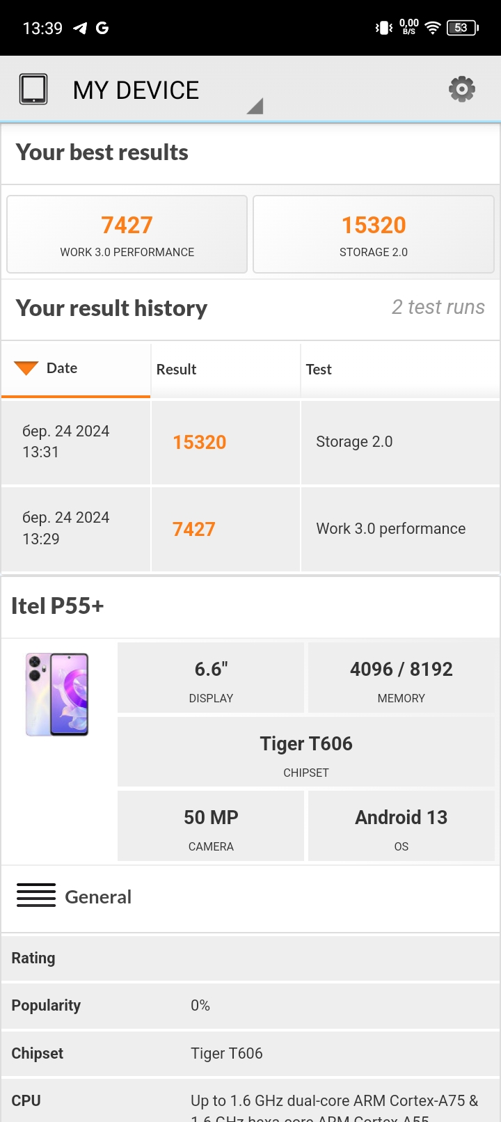 Производительности этому смартфону хватает для всех ключевых задач. Мы очень сомневаемся, что найдутся приложения, которые не потянет itel P55+, включая даже самые требовательные игры, пусть даже на минимальных настройках.