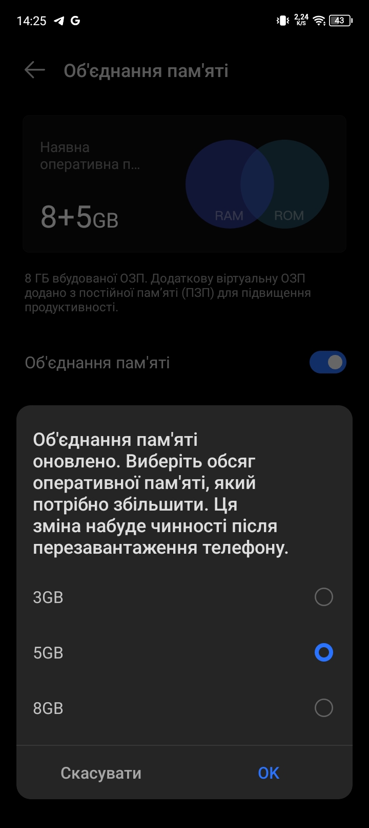 Комбинации памяти здесь не изменились — 4/128 и 8/256 ГБ. Поддерживаются карты памяти до 1 ТБ. 8 ГБ виртуальной памяти позволяют увеличить объем ОЗУ до 16 ГБ. В этом плане герой обзора уступает itel P55, который поддерживает до 16 ГБ виртуальной памяти.