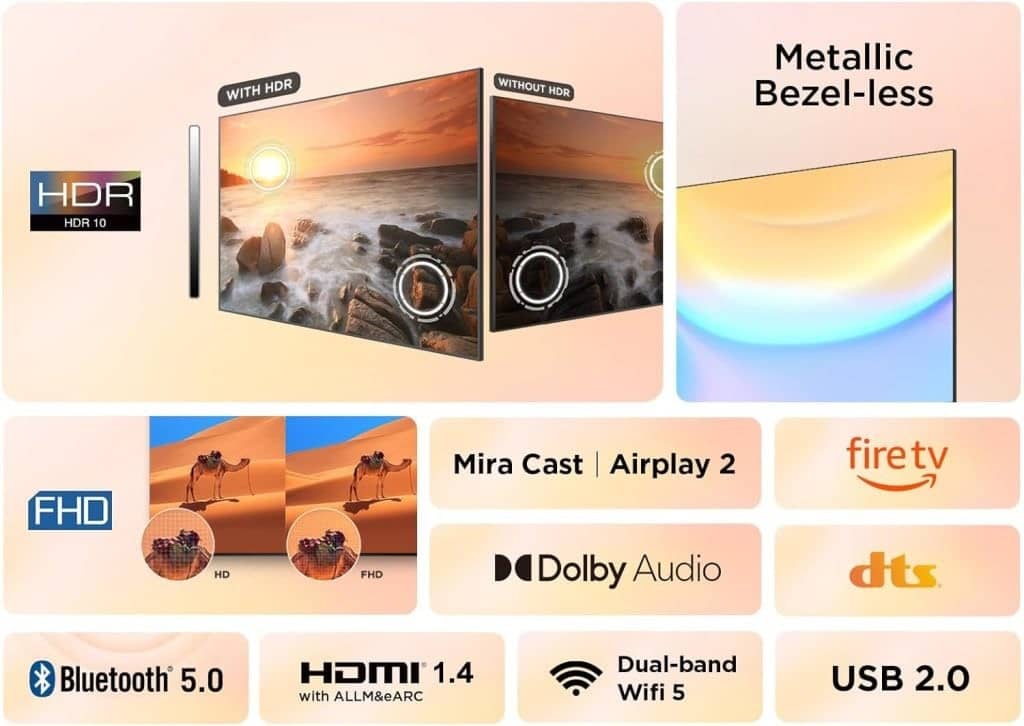 Интеграция операционной системы Fire OS 7 позволяет получать доступ к популярным потоковым приложениям, типа Prime Video и Disney+. Новинка позволяет передавать контент с мобильного устройства через технологии Miracast или Apple AirPlay, а голосовой пульт с Amazon Alexa — управлять телевизором голосовыми командами.