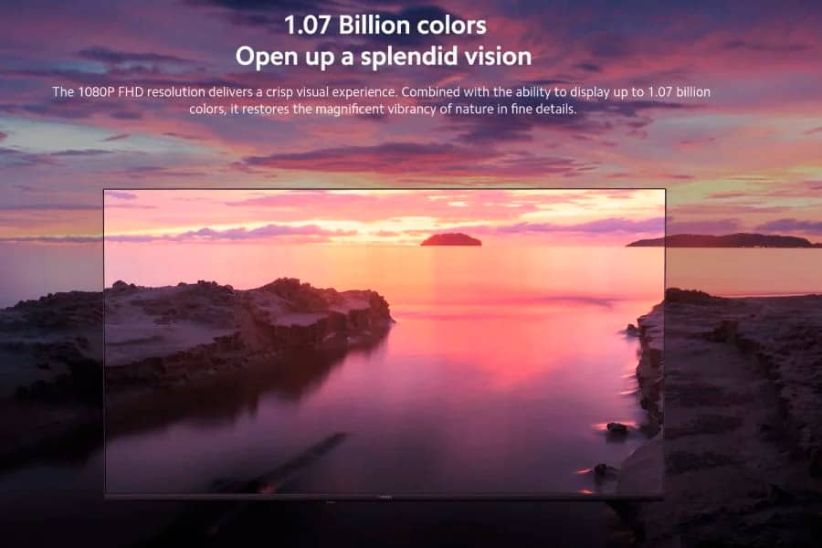Xiaomi TV A 43 FHD 2025 имеет 43-дюймовый экран с разрешением 1920 x 1080 пикселей (Full HD), частотой 60 Гц, углом обзора 178 градусов, 1 млрд цветов, тонкими рамками.