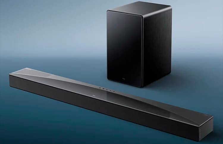 TCL Q75H предлагает 5.1.2 физическое объемное звучание с 8-канальной конфигурацией. Она обеспечивает совокупную пиковую мощность 620 Вт, оснащена беспроводным сабвуфером мощностью 200 Вт, использует технологию RAY-DANZ и поддерживает Dolby Atmos и DTS.