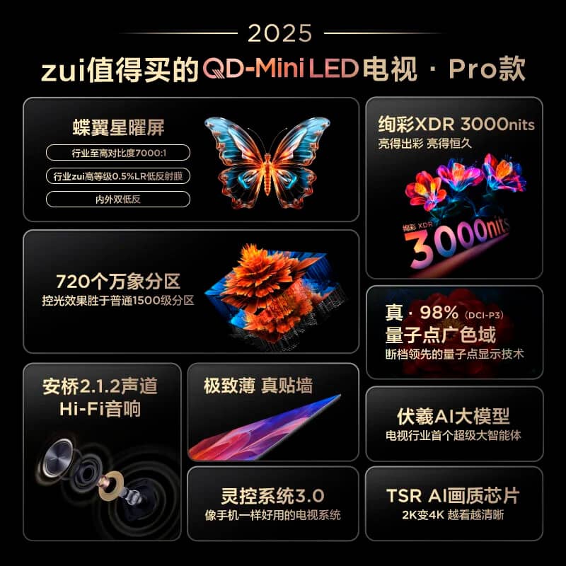 Модели от 65 дюймов и выше оснащены полноценной акустической системой Onkyo 2.1.2 с поддержкой Dolby Atmos, направленными вверх динамиками и отдельным сабвуфером. Вся серия работает на фирменной ОС Lingxi 3.0 без рекламы, а интеллектуальные функции основаны на AI-модели Fuxi, которая отвечает за голосовое управление, персонализацию и улучшение качества видео, приближая 2K-контент к 4K.