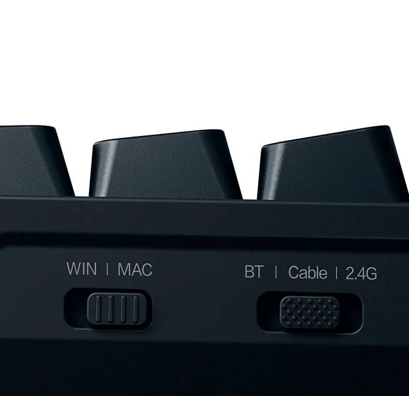 За перемикання між режимами з'єднання відповідає перемикач, розташований збоку. Тут же знаходиться другий перемикач ОС. Клавіатура працює як із Windows, так і з macOS.